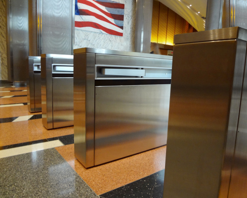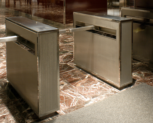 ES831 bi-directional optical turnstiles with hands-free barrier arms enhance the security of access control systems. The ES831 provides a visual as well as a psychological barrier while communicating to pedestrians that authorization is required to gain access to a facility or area.